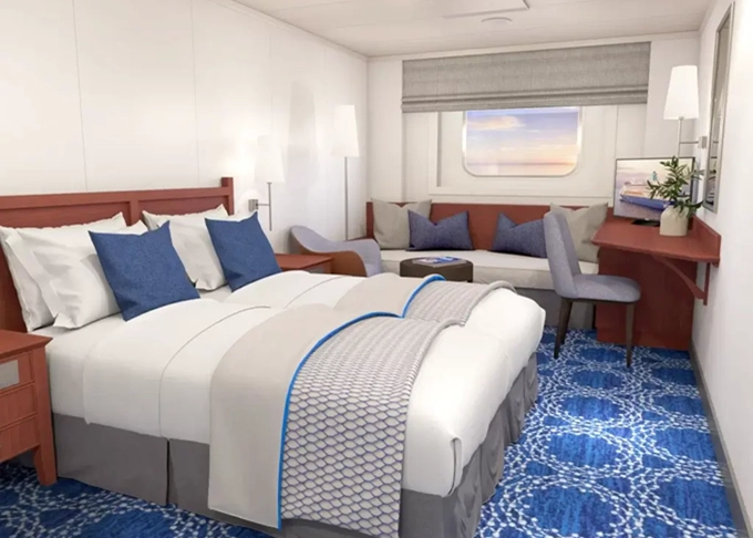 Všetky kajuty na lodi Celestyal Discovery majú klimatizáciu, kúpeľňu so sprchovacím kútom, telefón, sušič na vlasy, bezpečnostnú schránku a televízor.