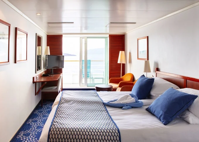 - Kajuta s balkónom Cosmos BA: 7. paluba, max 2 osoby, 60 kajút