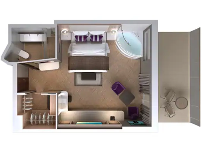 HG - The Haven Forward-Facing Penthouse Suite 39-43 m² / balkón 3-4 m². 9. až 13. paluba - vpredu. Max 4 osoby. Výhody The Haven. | 6 030 € 3 015 € za osobu | ||